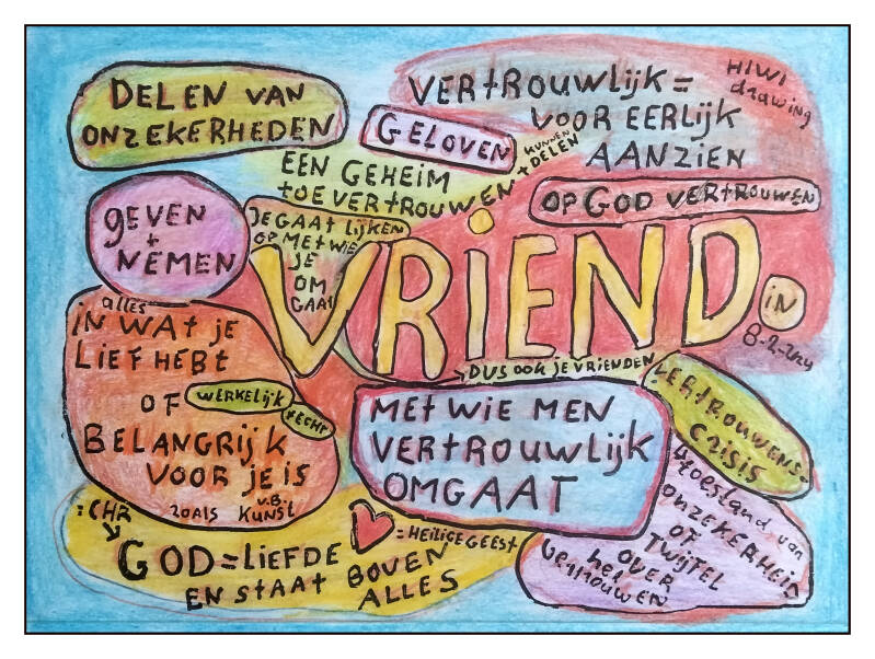 I would like to show you a special HIWIDRAWING that very compactly represents an entire booklet about the so-called 4-Values model of Liefdewerk in The Hague. I had once received the book from my friend Joy Bindraban. I came across the book by chance again in December 2023 and I made this hiwidrawing of it at the end of 2023 and the beginning of 2024. A little more explanation about the content of the 4-Values Model can be found at: https://hfp.jouwweb.nl/liefdewerk