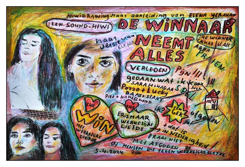 Deze hiwidrawing die ik een "SOUND-HIWI " heb willen noemen, maakte ik naar aanleiding van het nummer "THE WINNER TAKES IT ALL"( Het bekende ABBA lied) dat ik op 5 april 2024 voor het eerst via TIKTOK vernam van de zeer getalenteerde Elena Yeravan die het echt prachtig zingt en haar zelf (zoals zij gewoon is) begeleid op de gitaar.